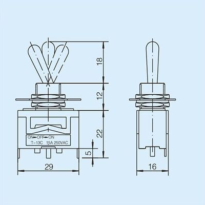 Single-pole double-throw intermediate stop type Toggle switch:
