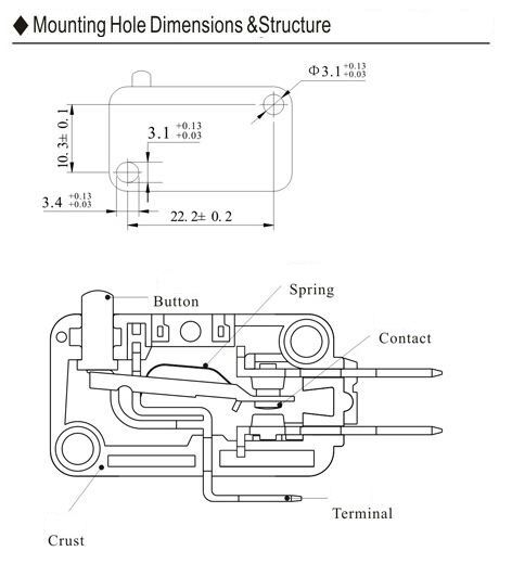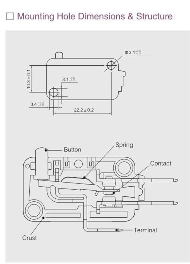 Long side terminal button type Micro Switch: