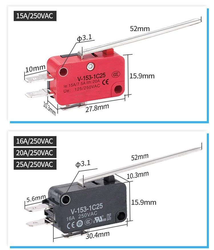 Small contact gap, snap action, high sensitivity and smalloperating travel;